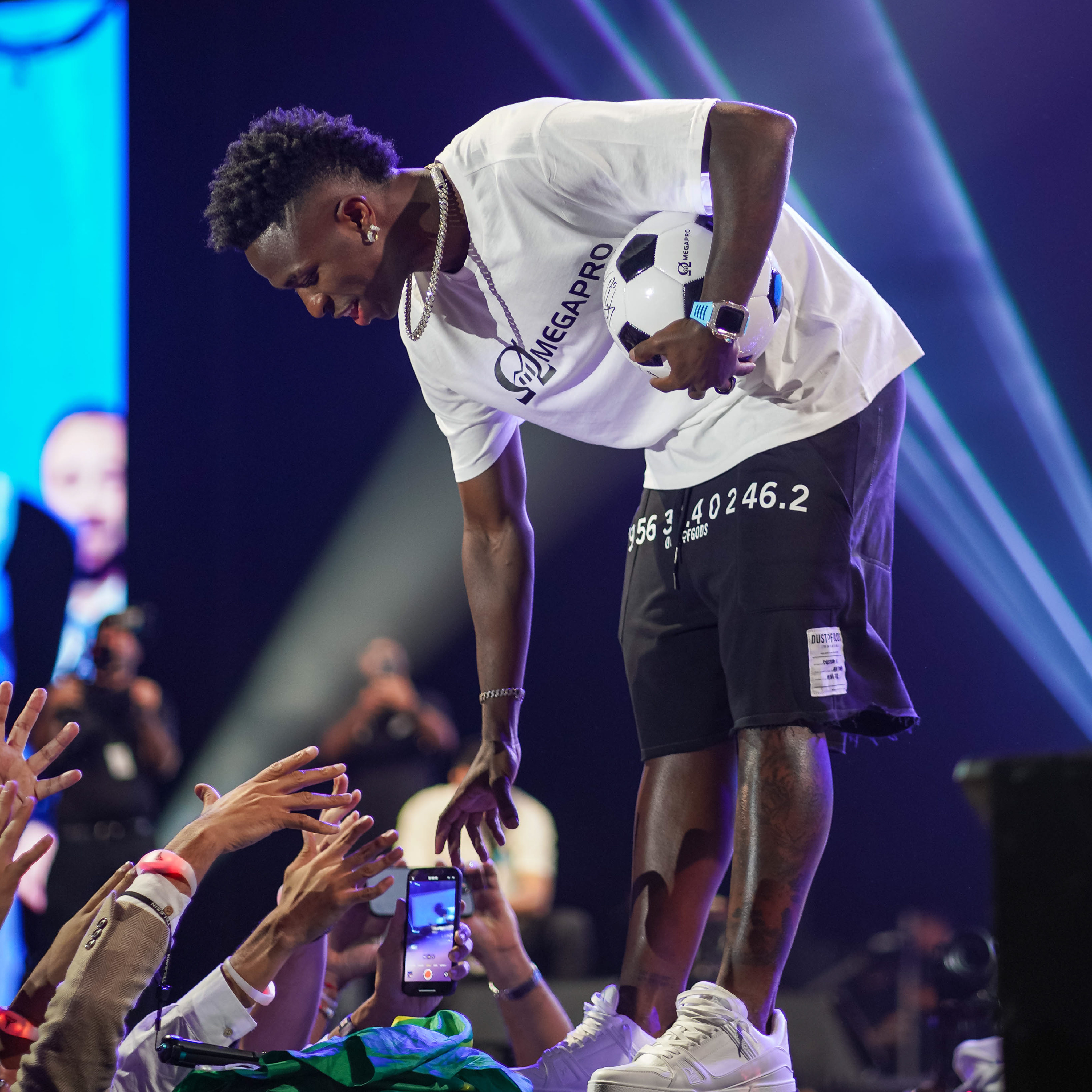 El siguiente en la lista de deportistas de éxito fue su compatriota Vinicius Jr. (conocido como Vini Jr.), de sólo 21 años, que saltó a la fama tras marcar el espectacular gol de la victoria del Real Madrid en la final de la Liga de Campeones de la UEFA de 2022. Con un extravagante peinado de Vini, que ahora hace furor entre todos los fanáticos del fútbol, el joven prodigio se adueñó del escenario del OmegaPro y habló hasta la saciedad ante la ensordecedora ovación que retumbó en el auditorio del PCC. Vinicius Jr. también obligó a los fans del público a hacerse selfies, firmar autógrafos, camisetas y otros artículos de colección.