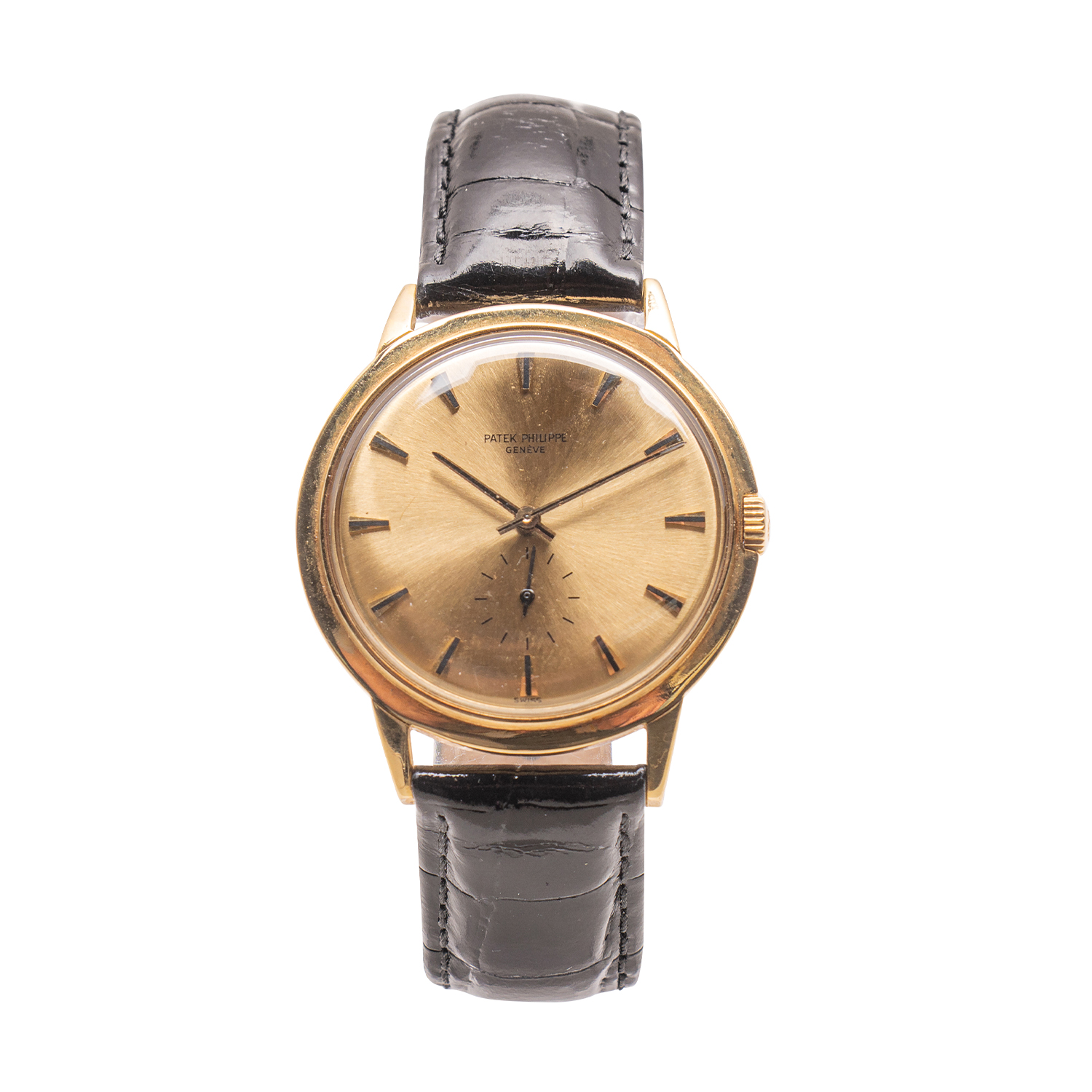 1960s-era Swiss Patek Philippe Calatrava watch (Ref. 3542), 18kt yellow gold with a nice crocodile strap, stamped for 18kt gold on the inner caseback and inside lugs (CA$11,800).