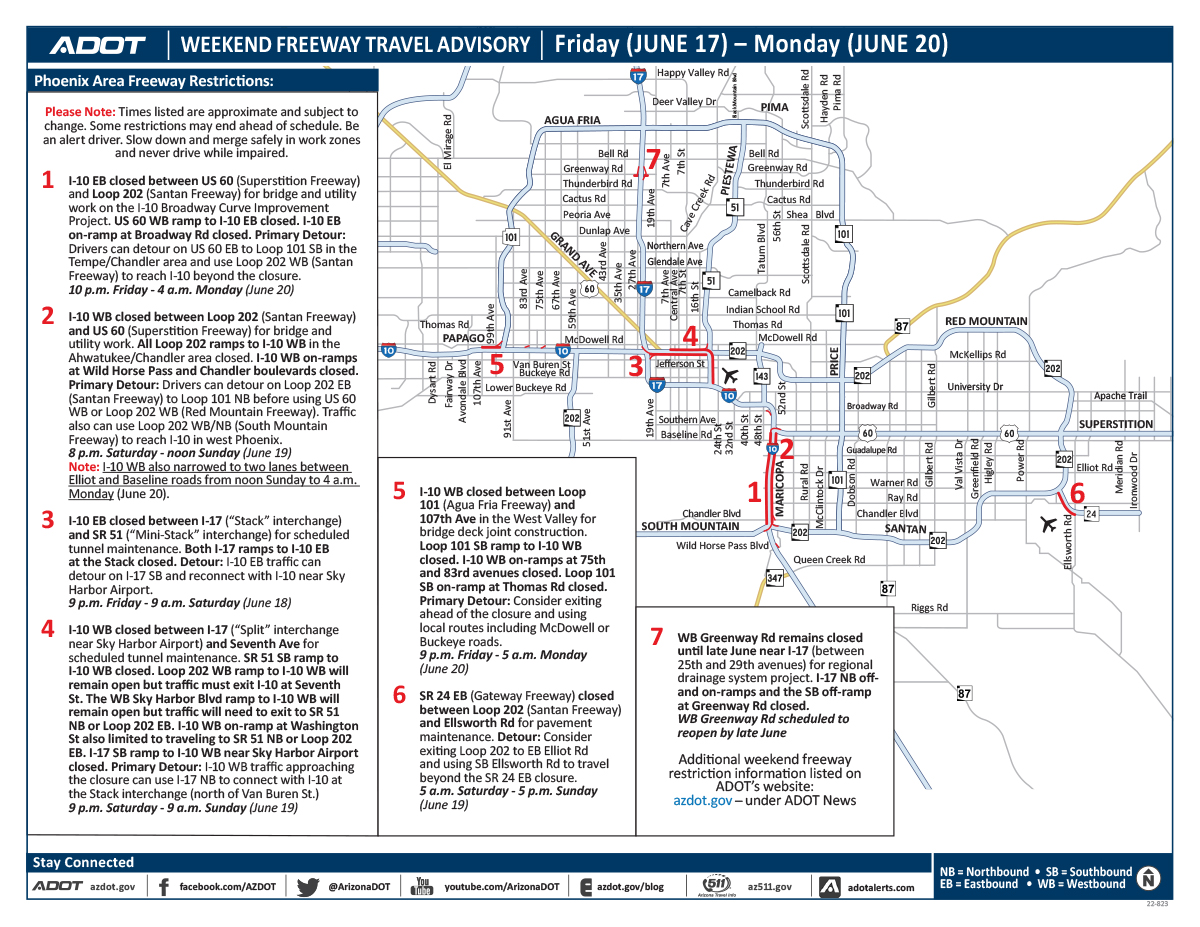 ADOT's Weekend Freeway Travel Advisory (June 17-20) - Phoenix area