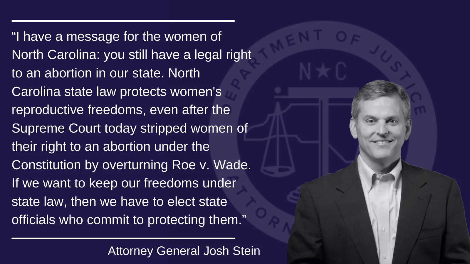 Attorney General Josh Stein Reacts to Supreme Court Decision on Abortion