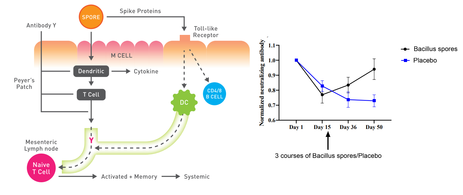 “We collaborated with Macao Greater Bay Area Association of Healthcare Providers to conduct a clinical trial in Macau,” says DreamTec’s Executive Director and Chief Scientific Officer, Dr. Keith Wai-Yeung Kwong, “with 16 people who were vaccinated with two shots of the Pfizer or Sinovac Covid-19 vaccines over a six-month period. Each individual was assayed for neutralizing antibodies against the SARS-CoV-2 spike protein after administered with Bacillus spores or placebo. Our team and collaborators reported last week that neutralizing antibodies against the spike protein dropped over time in individuals taking placebo, while those who received a probiotic consisting of inactivated Bacillus subtilis spores increased their neutralizing antibodies by an average increase of 20%.”