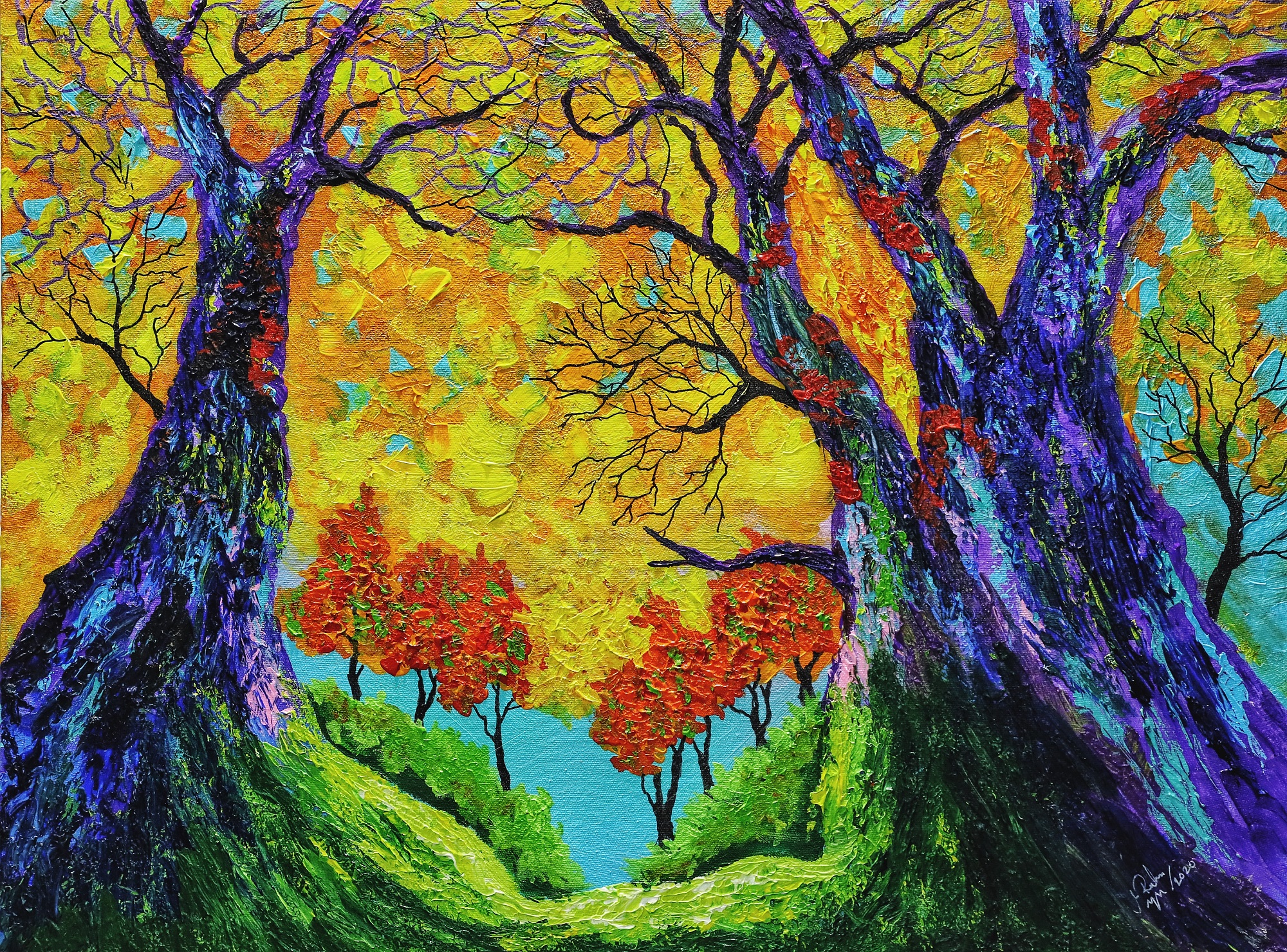 While I am into a new canvas, it feels as if I am on a constant quest for discovery and knowledge and clarity and insight into perception – thought, dreams, emotion, habits, mediocrity, and brilliance. For a long time now, I have found myself committed to illuminated landscapes.