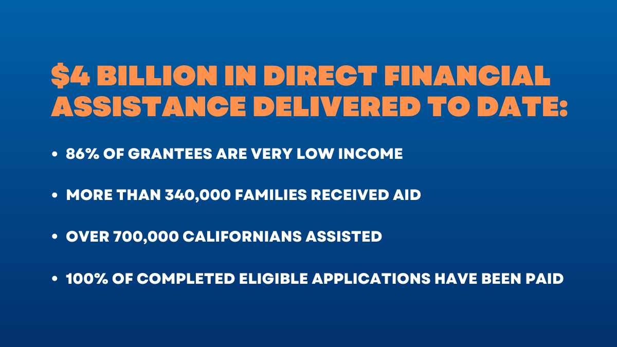 “California ran the largest and most successful eviction protection and rent relief program in the country,” said Governor Newsom. “340,000 families weren’t evicted because of this and the overwhelming majority of assistance went to very low-income households. Homelessness prevented, public health protected, families stabilized.”
