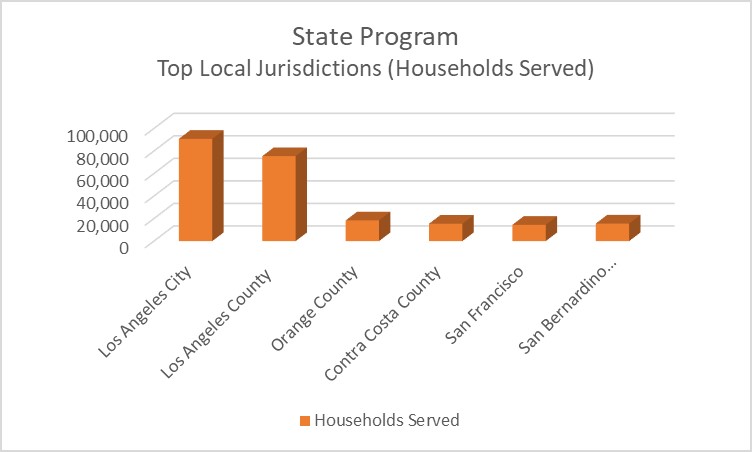 The figures below are reflective of the top local jurisdictions in the state program in terms of amount of assistance and households served.