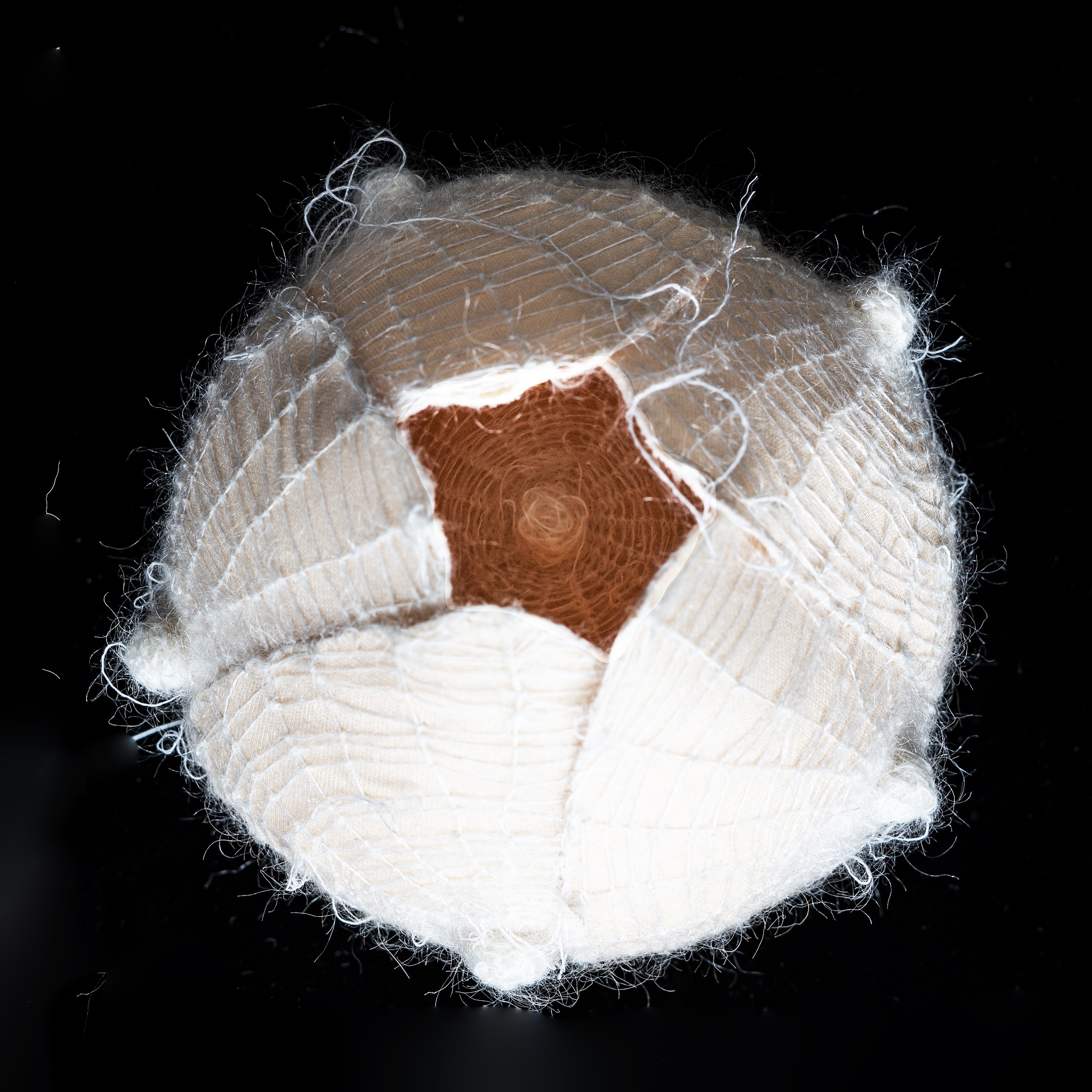 “I make sculptures, wall pieces, and garments using textiles and found objects to explore Japanese aesthetics and the philosophy of Buddha. They are 'Wabi Sabi,' the beauty found in imperfections, and 'Mono-no-aware,' the feeling of sympathy for changing or perishing phenomena or substances. Closely related to the philosophy of Buddha, these can be summarized in three keywords: impermanence, insubstantiality, and suffering. My work addresses infinity as the succession of fleeting and brittle activities. With freedom and flexibility, I combine acquired knowledge and experiment and create art to inspire dialogue and reflection on these concepts through materials and aesthetic philosophies. I actively use scraps that come from both my working practice and the environment around me."