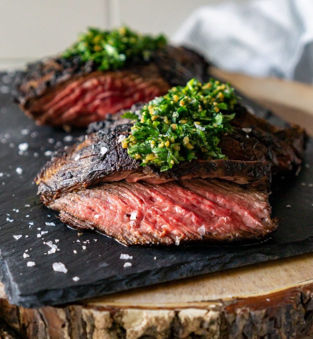 • Entrée of grilled gaucho steak with a cumin/coffee dusting with chimichurri (or vegetarian option)
