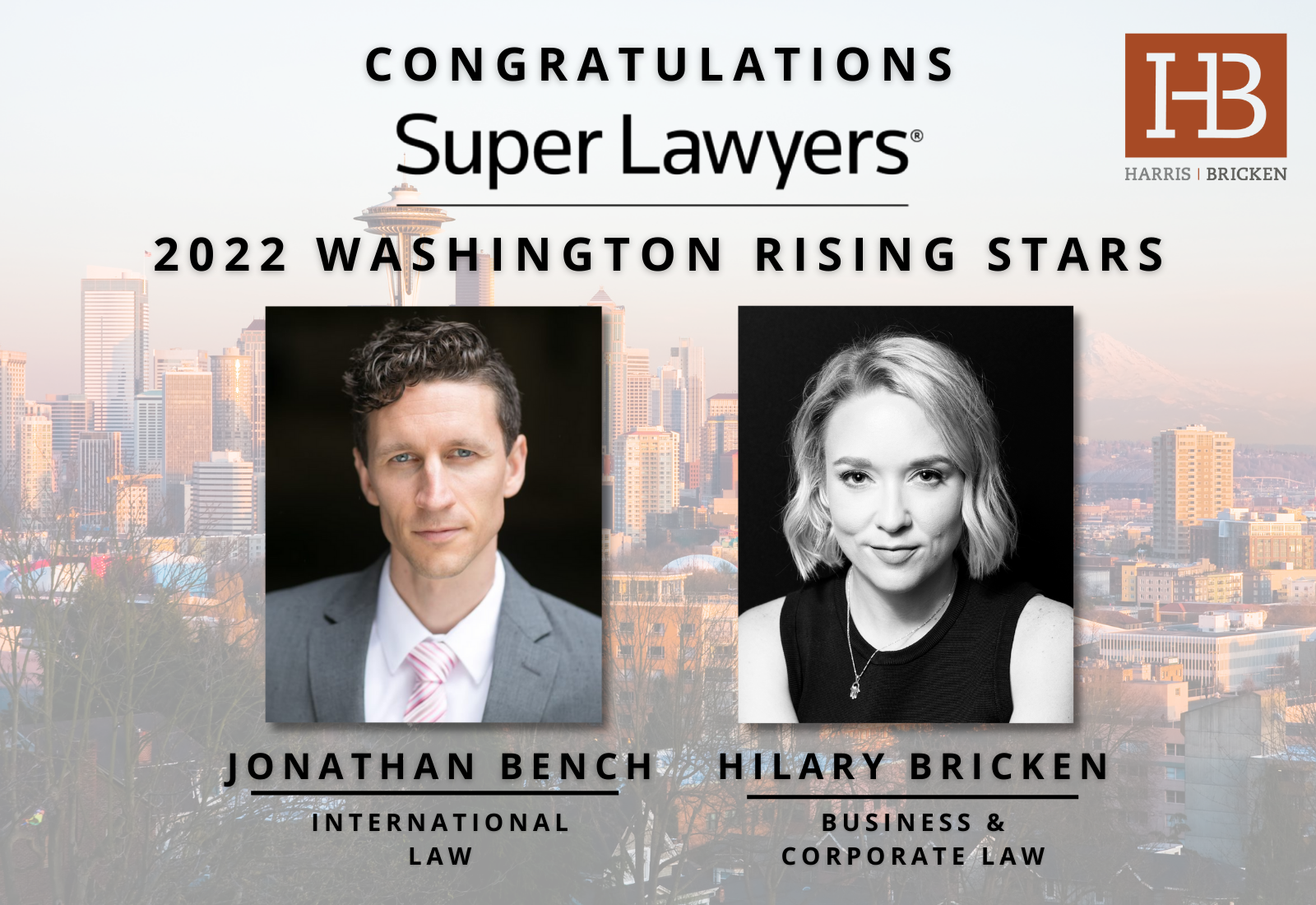SEATTLE, WA, U.S.A., July 14, 2022 /EINPresswire.com/ -- Harris Bricken attorneys Hilary Bricken and Jonathan Bench have been named Super Lawyers Washington Rising Stars 2022.