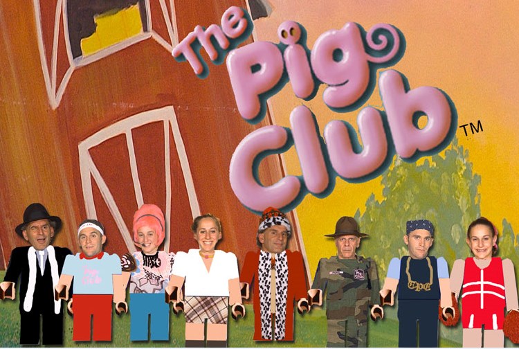 The characters in the show include King T-Bone- the wise leader of the club; Lenlard- a work out enthusiast; Sgt. Pork- defender of patriotism; Karham- a “hammy” performer reminiscent of Britney Spears; Rachsow- a genius pig who teaches the value of education and Rebacon- the happy and enthusiastic Pig Club cheerleader.