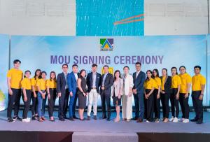 YouAdMe CEO and co-founder Bernard Teo (ninth from the left) and Frasers Hospitality COO Mark Chan (centre) at the MOU Signing Ceremony in Phnom Penh, Cambodia.
