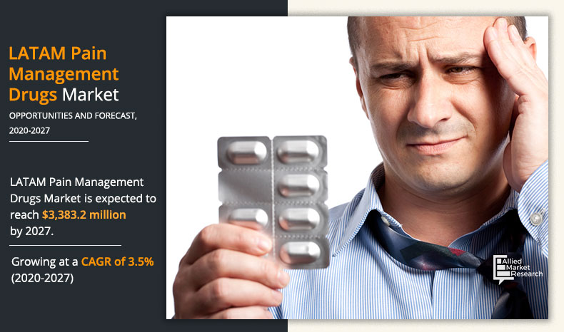 PORTLAND, OREGON, US, July 14, 2022 /EINPresswire.com/ -- According to a new report published by Allied Market Research, titled, the LATAM Pain Management Drugs Market was valued at $2,683.82 million in 2019, and is projected to reach $3,383.20 million by 2027, registering a CAGR of 3.5% from 2020 to 2027. Growth in the geriatric population is a key factor driving the growth of the LATAM pain management market, as older people are more likely to suffer from joint pain and other chronic conditions. Furthermore, the growth of the market in Latin America is fueled by the rise in chronic diseases such as cancer, diabetic nephropathy, and osteoarthritis.