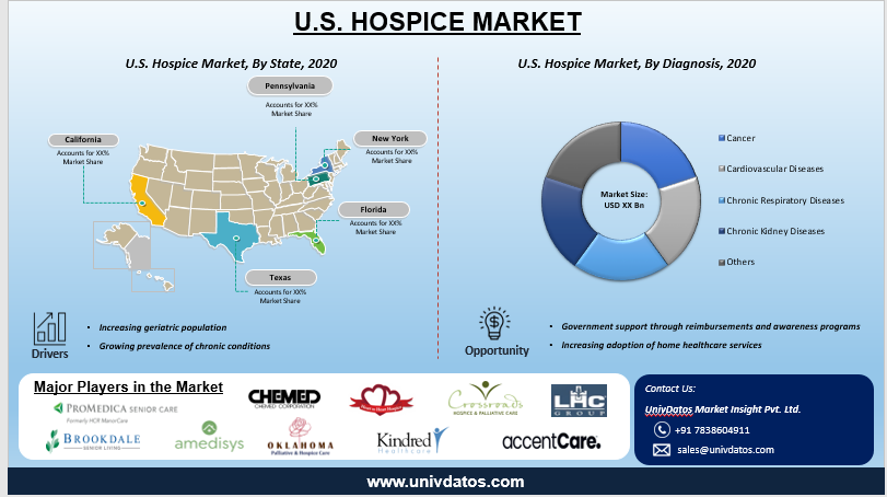 NOIDA, UTTAR PRADESH, INDIA, July 18, 2022 /EINPresswire.com/ -- A comprehensive overview of the U.S. hospice market is recently added by UnivDatos Market Insights to its humongous database. The report has been aggregated by collecting informative data from various dynamics such as market drivers, restraints, and opportunities. This innovative report makes use of several analyses to get a closer outlook on the U.S. hospice market globally. This report offers a detailed analysis of the latest industry developments and trending factors that are influencing the market growth. Furthermore, this statistical market research repository examines and estimates the global market at regional and country levels. The U.S. Hospice Market is likely to showcase a robust growth of around 8% during the forecast period (2021-2027).Request Sample Copy of this Report @ https://univdatos.com/get-a-free-sample-form-php/?product_id=22835