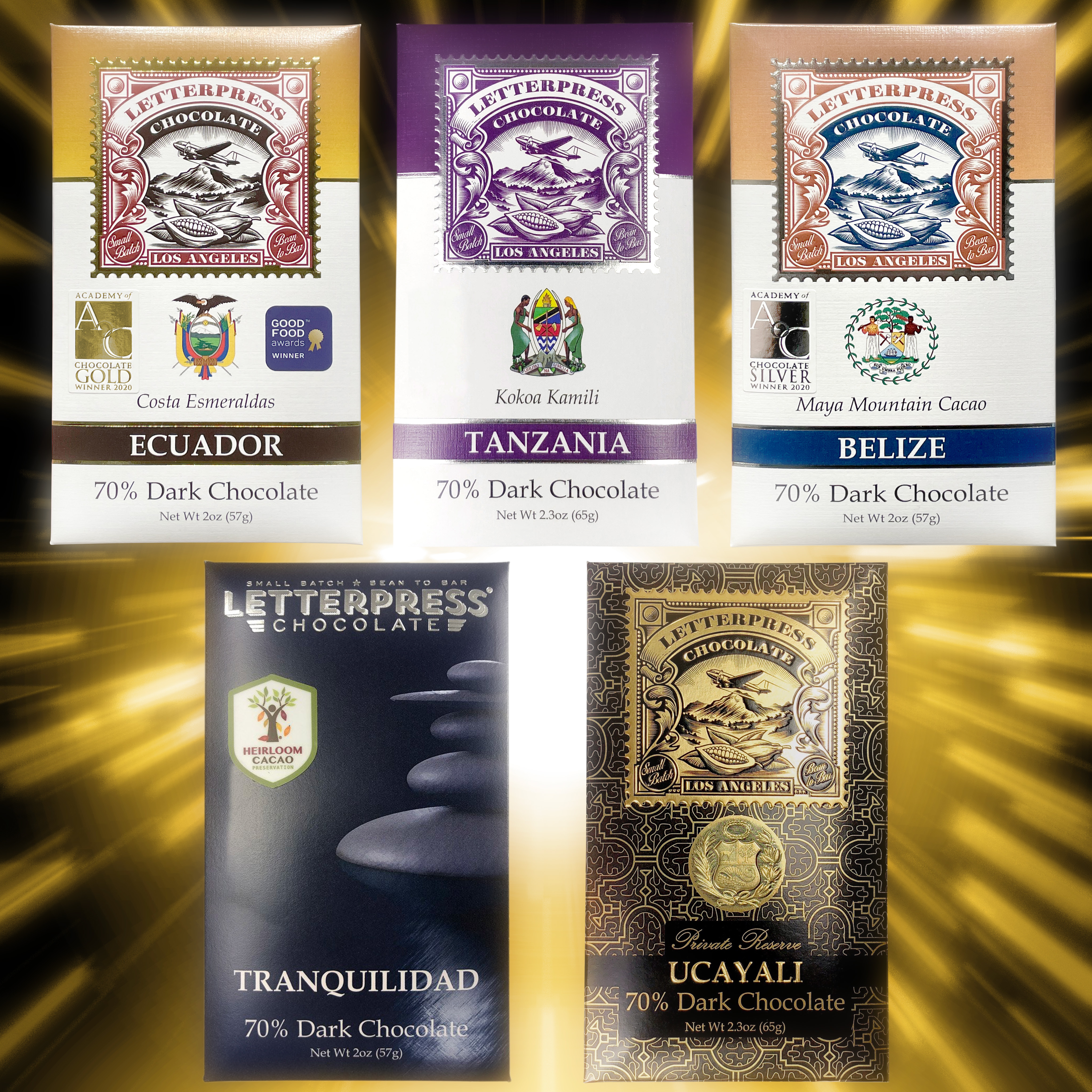 LetterPress Chocolate, a bean to bar chocolate company known for single origin dark chocolate, has swept London's Academy of Chocolate Awards with nine bars winning Gold and Silver. The Academy of Chocolate judges chocolate bars from around the world, and LetterPress Chocolate has won more Gold and Silver awards than any other US chocolate company.