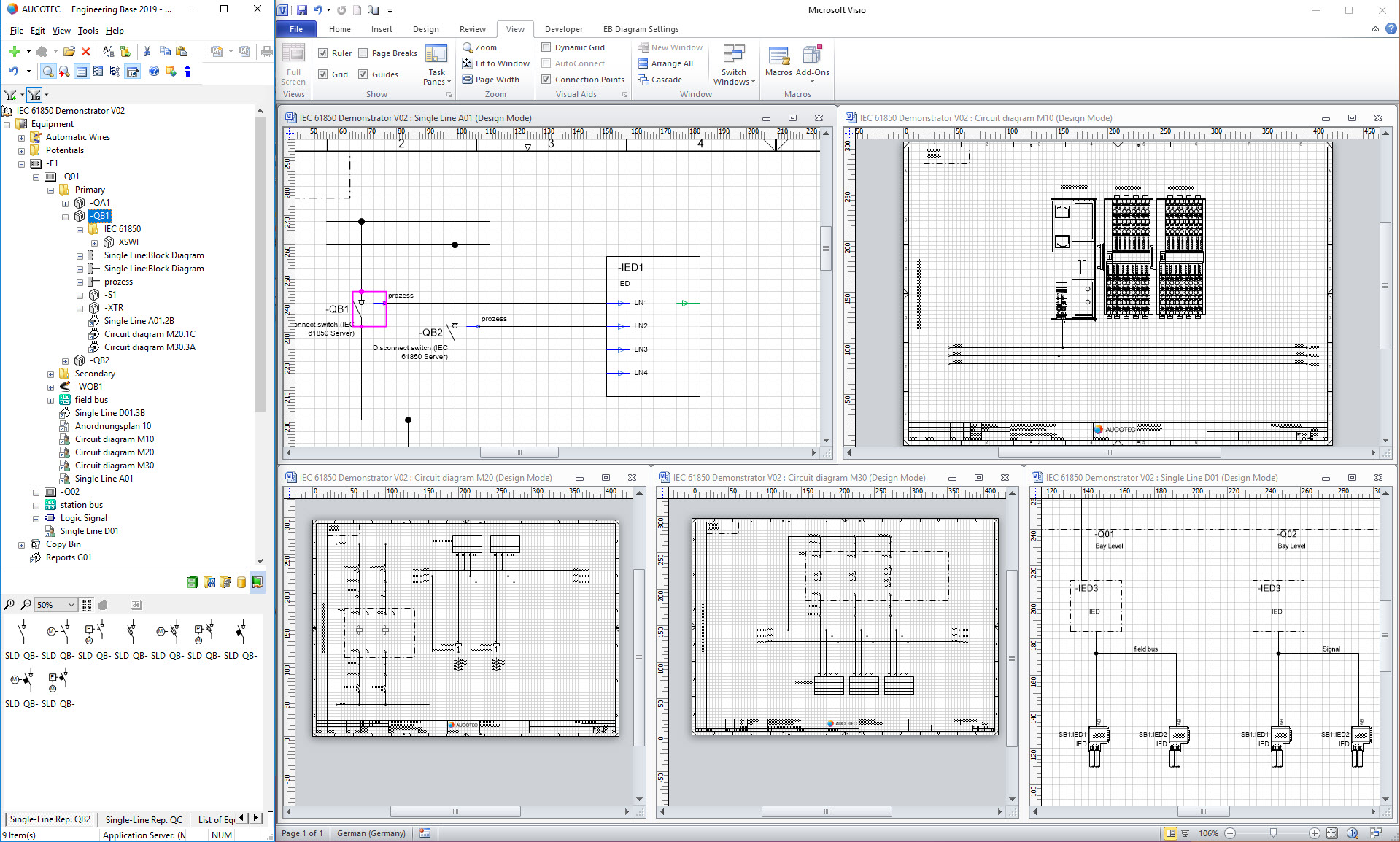 Thus, EB begins with the single-line diagram, the important source document that defines the primary technology devices. Up to now, experts in this discipline have developed the graphics in a separate tool and then given a list of devices, sometimes a DWG, to the secondary technology. Their specialists then have to build the SL diagram once again in EB, where an intelligent model of the entire plant is created thanks to data centering. "Duplication of effort can be easily saved if the primary technology also uses EB. Major customers in particular demand this, and the platform makes it possible for the first time," explains Aucotec product manager Michaela Imbusch. This allows secondary engineers to begin their detailed planning much more quickly and, most importantly, seamlessly, as soon as the first device is defined, rather than when the primary planning is complete. The proximity to this discipline is very clearly demonstrated by 2D engineering expert Aucotec at Cigre: right next to each other and without the usual partition wall, the company is presenting itself with Entegra GmbH, to whose 3D system Primtech an EB coupling is already underway. It will also be presented in Paris with all its possibilities and synergies.