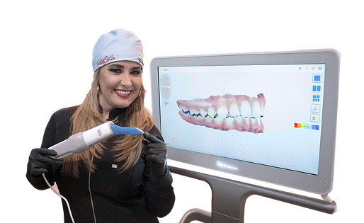 Dr. Grisel Martos uses an iTero intraoral scanner to scan their patients' mouths and demonstrate how their Invisalign treatment will appear. This technology enhances the patient experience by allowing patients to understand their diagnosis and treatment plan better. It also cuts the time it takes to set up the ClinCheck system.