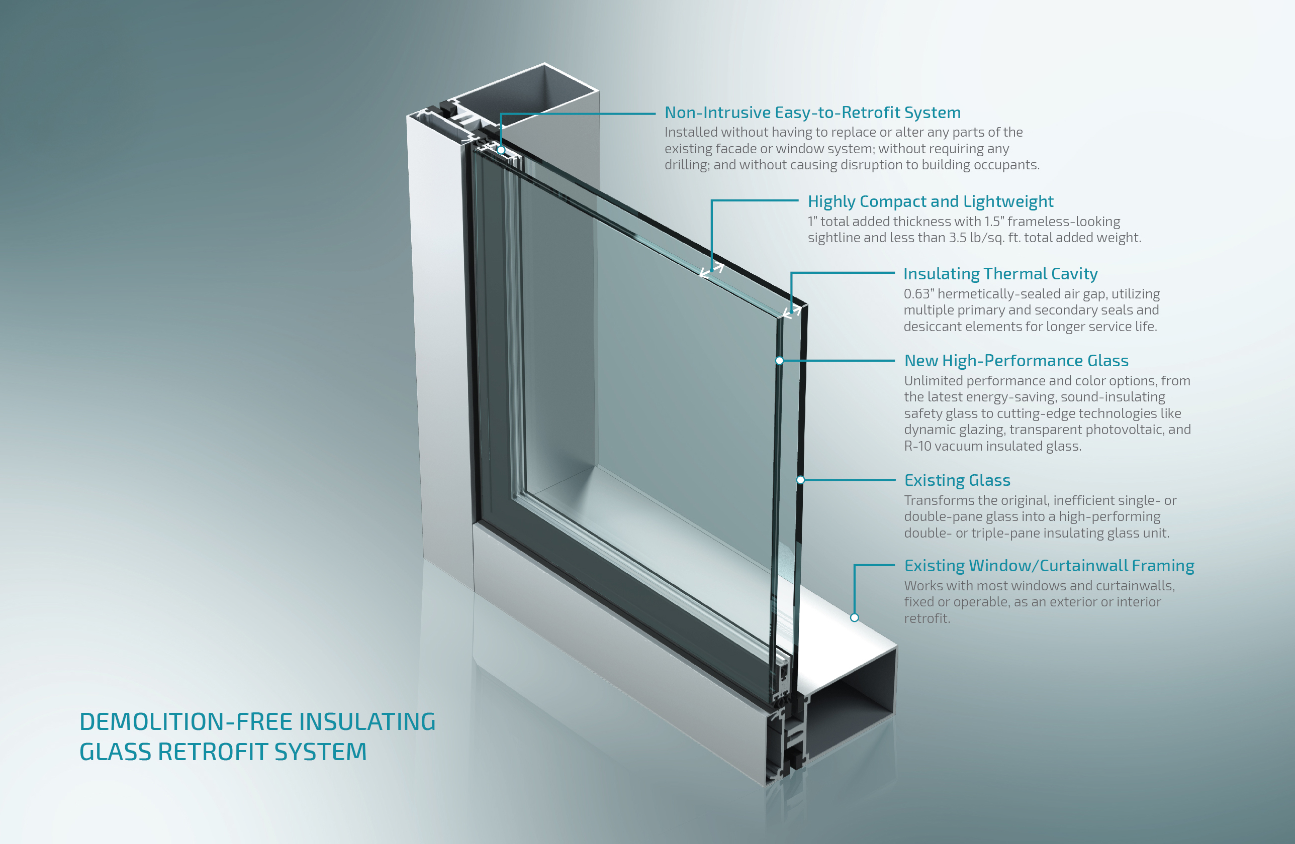 The company's patented, demolition-free method to upgrade existing single- and double-glazed windows into multi-layer high-performance insulated glass is ideally suited to urban environments with high heating / cooling energy needs and a high concentration of aging, energy-inefficient buildings.