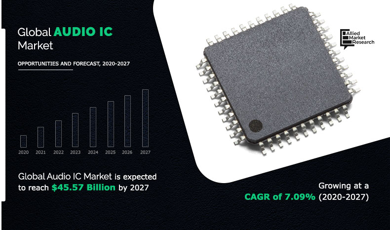 OREGAON, PORTLAND, UNITED STATES, July 29, 2022 /EINPresswire.com/ -- Allied Market Research Published Latest New Report titled, “Audio IC Market By IC Type (Audio Amplifier, Audio DSP, Audio Codecs, and Microphone IC) and Application (Computer & Tablets, Phones, Headphones, Home Entertainment Systems, Automotive, Smart Home & IoT Devices, and Wearables): Global Opportunity Analysis and Industry Forecast, 2020–2027”