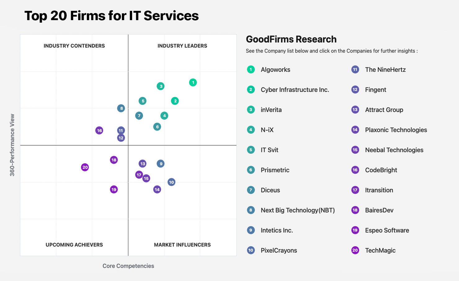 Top Twenty IT Service Companies Identified by GoodFirms Leaders Matrix