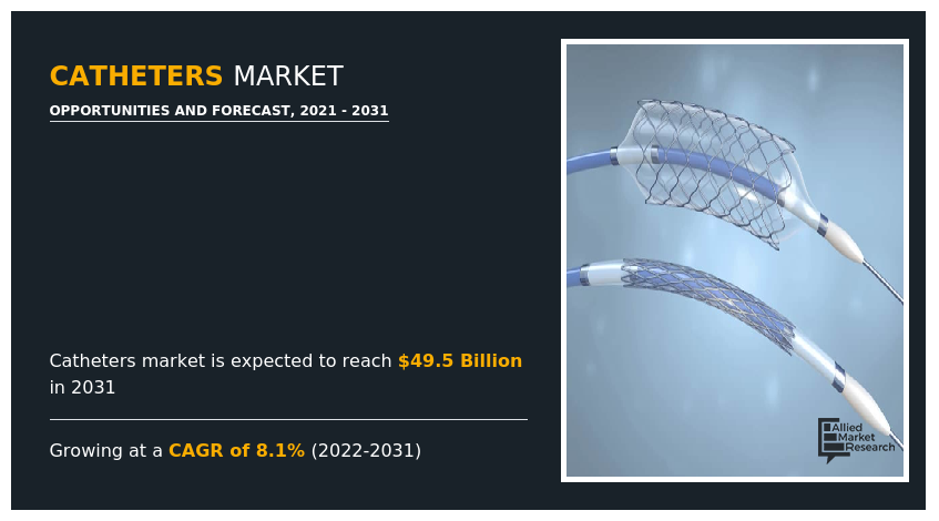 PORTLAND, OREGON, UNITED STATES, July 29, 2022 /EINPresswire.com/ -- Allied Market Research added new research on Catheters Market- Opportunity Analysis and Industry Forecast, 2022–2030. The Catheters market explores comprehensive study on various segments like size, share, development, innovation, sales and overall growth of major players. The research is based on primary and secondary data sources and it consists both qualitative and quantitative detailing. Some of the key players involved in the study are Abbott Laboratories, B. Braun Melsungen AG, Becton Dickinson and Company, Boston Scientific Corporation, Johnson and Johnson, Medtronic Plc, Edwards Lifesciences Corporation, Teleflex Incorporated, Cook Medical Inc., and Stryker Corporation