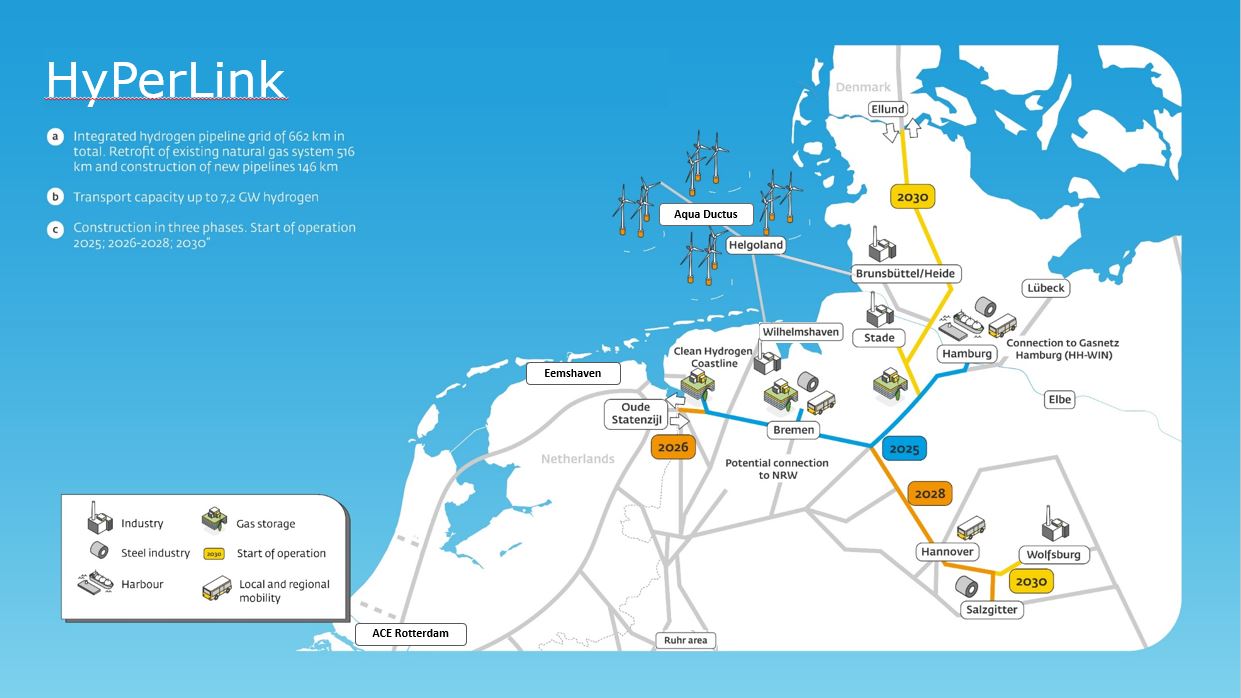 The Dutch energy infrastructure company Gasunie will play a decisive role in the energy transition in the future and, as part of these efforts, has become a member of H2Global. Gasunie will contribute its know-how in the transport, storage and import of green hydrogen as the newest member of the H2Global Foundation. Gasunie is already developing a hydrogen network, called HyPerLink, which connects Denmark and the Netherlands across northern Germany. In addition, Gasunie is cooperating with other companies on the AquaDuctus pipeline project, which will transport up to one million tons of green hydrogen per year directly from the production site in the North Sea to the mainland.