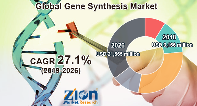 Global gene synthesis market projected reach USD 21,565 million by 2026, a 27.1% CAGR between 2019 and 2026.