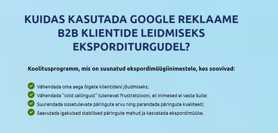 Käivitub praktiline B2B Google reklaamide koolitus uute B2B klientide leidmiseks eksporditurgudelt