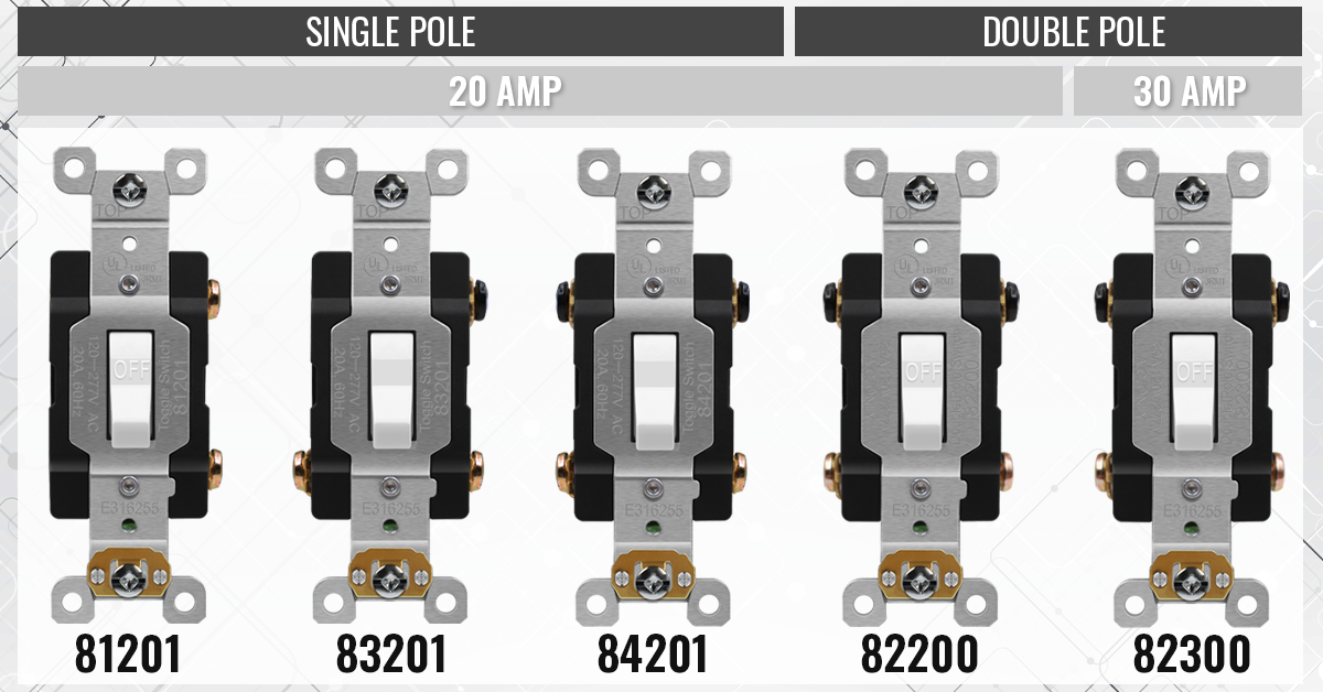 Enerlites now proudly offers four different 20A toggle switches and one new 30A option. The 20A switches are available in single-pole, double-pole, 3-way, and 4-way variations and the 30A switch is available in double-pole only. Double-pole switches are capable of controlling two circuits with the same wall switch, making them perfect for factories, workshops, and other locations with exceptionally high power demands.