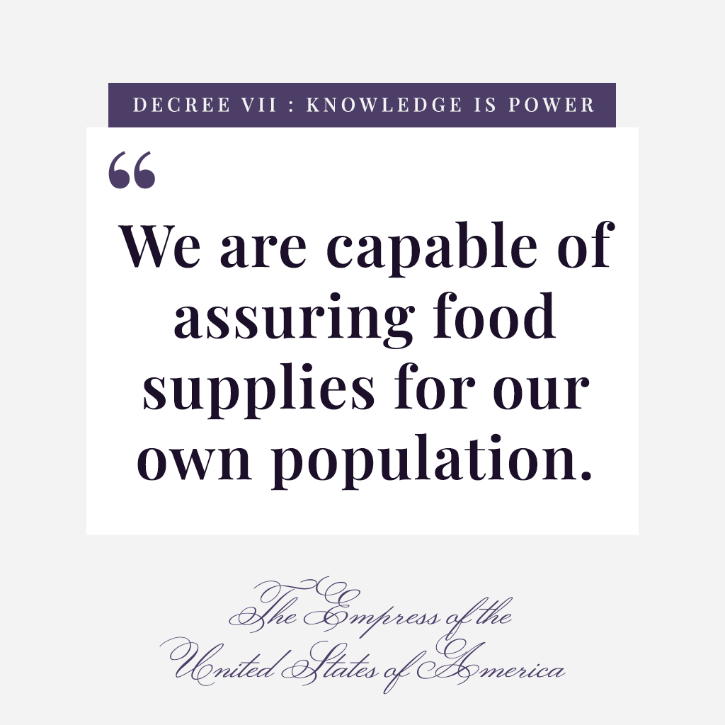 The Empress of the United States of America Releases Her Seventh Decree Addressing Fear Over Food Supply Issues