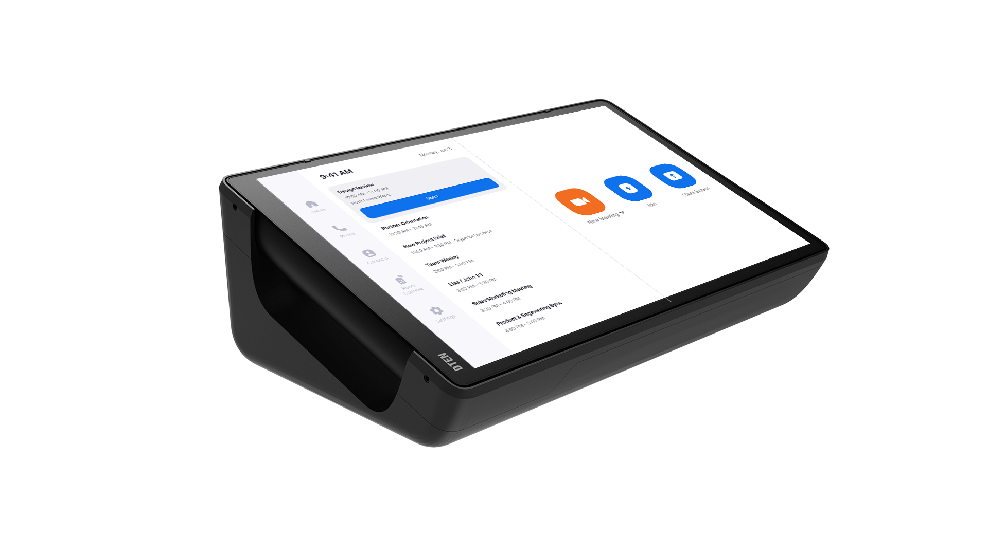 Both PoE and Wi-Fi versions offer easy, intuitive solutions for managing meetings through Zoom Rooms Controller (ZRC). With a single tap of the 10-inch LED screen, users can launch meetings, admit participants, browse meeting schedules, adjust camera and microphone settings, and more.