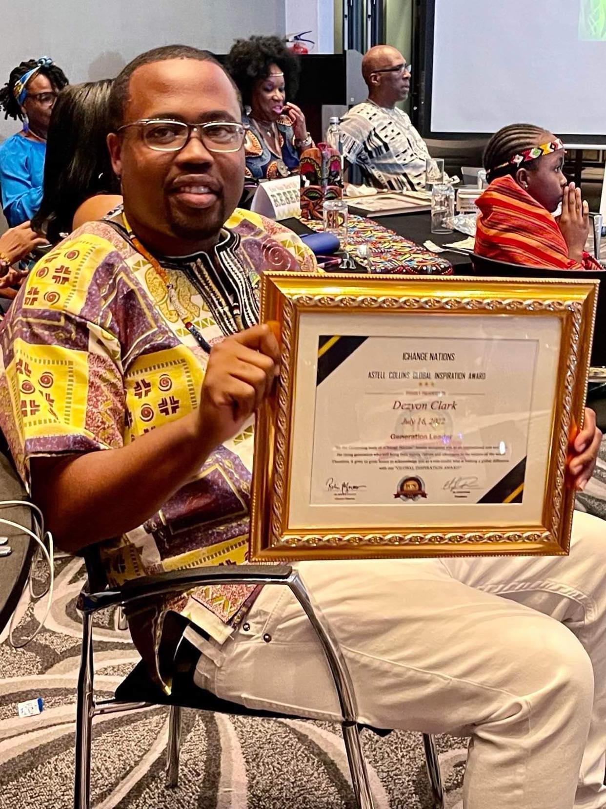 Mr. Clark was nominated and presented with the Dr. Astell Collins Generation Leader Award by iChange Nations™ Special Envoy, Dr. Ruben West.
