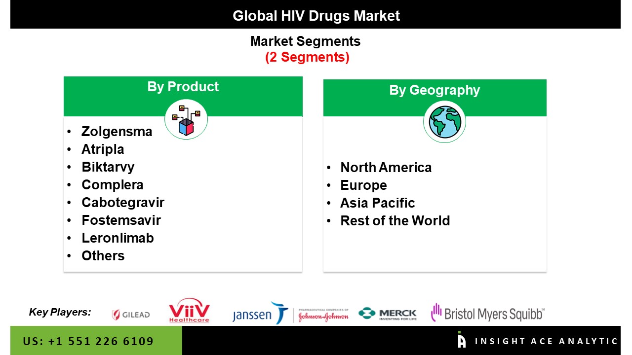 Major market players operating in the HIV Drugs market include Gilead Sciences, Janssen, Merck & Co., Bristol-Myers Squibb, TaiMed Biologics, CytoDyn, ViiV Healthcare, Boehringer Ingelheim International GmbH, Teva Pharmaceutical Industries Ltd., Johnson & Johnson, Cipla Limited, AbbVie, F. Hoffmann-La Roche Ltd., Daiichi Sankyo, Emcure, Hetero Drugs, and Mylan among others.