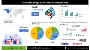 According to the latest research by InsightAce Analytic, the global HIV Drugs market is valued at US$ 29.43 Billion in 2021, and it is expected to reach US$ 41.08 Billion by 2030, with a CAGR of 4.26% during a forecast period of 2022-2030. One of the most severe and persistent illnesses brought on by the human immunodeficiency virus (HIV) is regarded to be acquired immune deficiency syndrome (AIDS). It is a viral infection that grows through contact with blood, semen, breast milk, and other agents that have HIV infected them. HIV infection rates are increasing dramatically. The World Health Organization (WHO) evaluates that 33.0 million people worldwide are HIV-positive at this time. People are now more and more conscious of this, which has increased the number of testing processes. High potency HIV drugs are now in high demand for the treatment and management of the condition as a result of this.