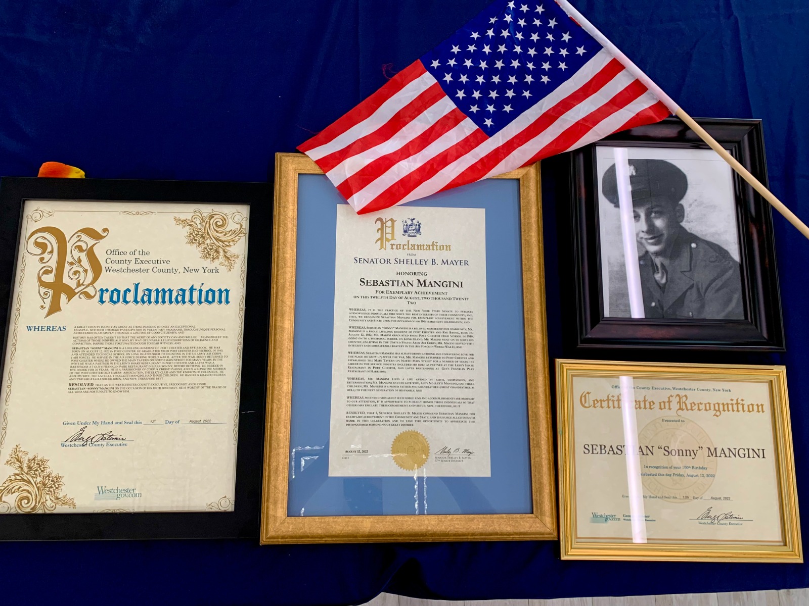 The Enclave is honored to care for this brave veteran, and alongside Sonny’s loved ones, hosted this incredible 100th birthday celebration for Sonny on Friday, August 12th. Senator Shelley B. Mayer and Westchester County Executive George Latimer also distributed Proclamations to Mr. Mangini, honoring his service and beautiful milestone birthday.