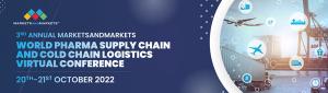 PUNE, MH, INDIA, August 18, 2022 /EINPresswire.com/ -- The pandemic dealt healthcare a huge blow in general but pharmaceutical supply chains & medicinal logistics were some of the hardest hit areas as a result of quarantines, curfews & closures. As most companies resorted to cutting losses & risk mitigation, only a few were able to fall back on well laid contingency plans.The 3RD ANNUAL MARKETSANDMARKETS WORLD PHARMA SUPPLY CHAIN AND COLD CHAIN LOGISTICS VIRTUAL CONFERENCE scheduled for the 20th- 21st of OCTOBER 2022 will delve deep into the aspects that impacted the efficient functioning of supply chains & drug deliveries, what factors & methods allowed us to overcome challenges during the pandemic while also discussing how fresh regulations being drafted are primed to radically change manufacturing & sourcing from various parts of the globe.