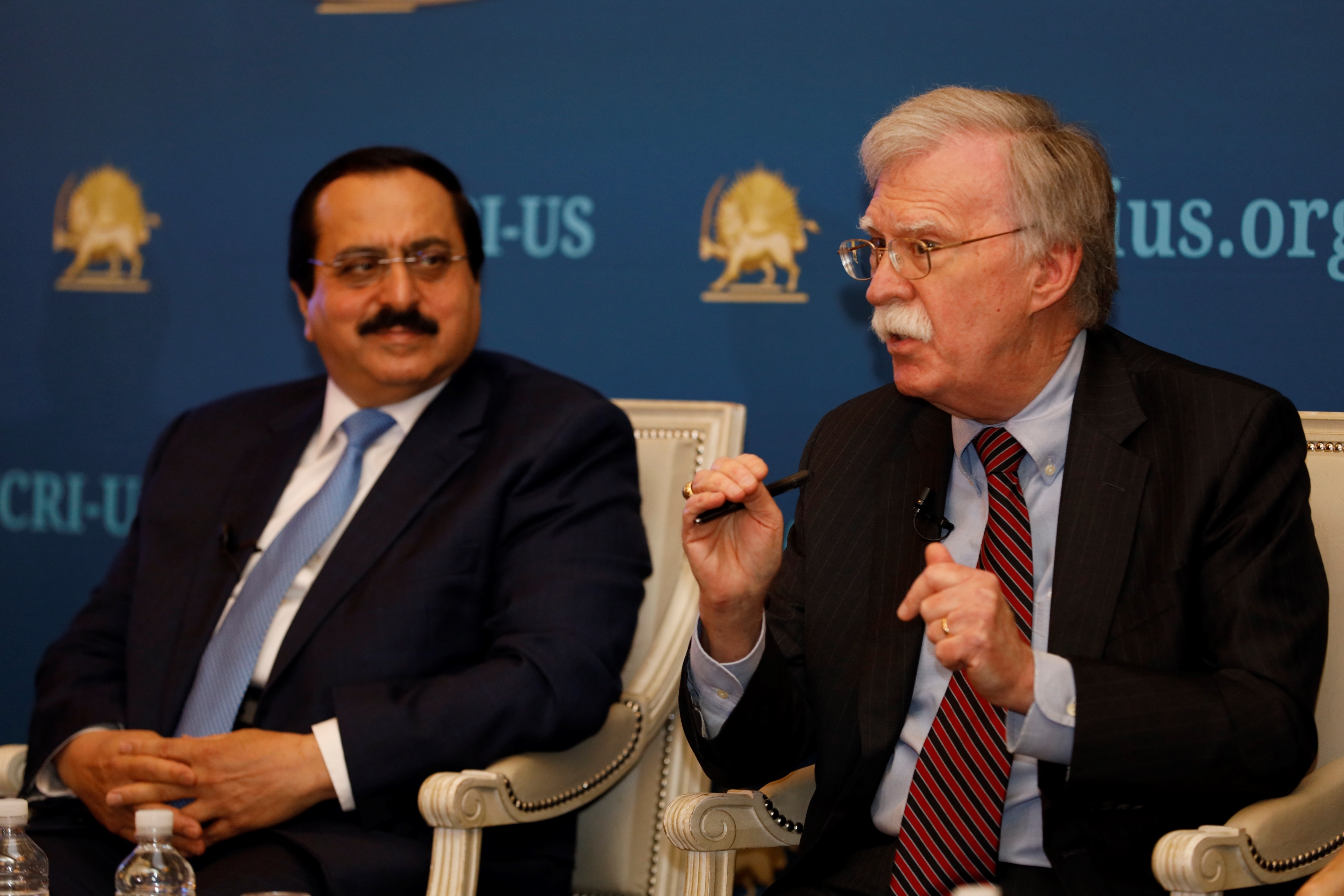 Alireza Jafarzadeh left listens to Ambassador John Bolton making remarks during the August 2022 panel by NCRI-US.