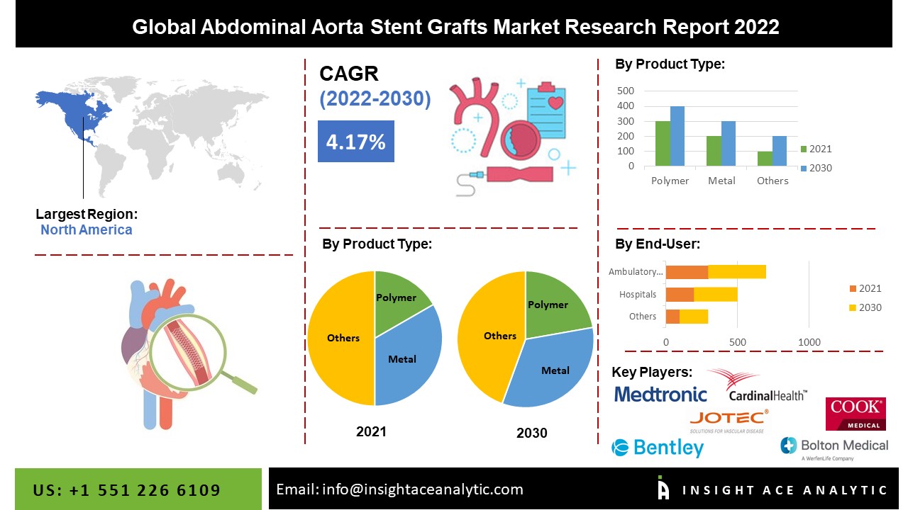 NEW JERSEY, NJ, USA, August 19, 2022 /EINPresswire.com/ -- InsightAce Analytic Pvt. Ltd. announces the release of a market assessment report on the "Global Abdominal Aorta Stent Grafts Market- by Product Type (Polymer and Metal), End Users (Hospitals, Ambulatory Surgical Centers and Specialty Clinics), Trends, Industry Competition Analysis, Revenue and Forecast To 2030."