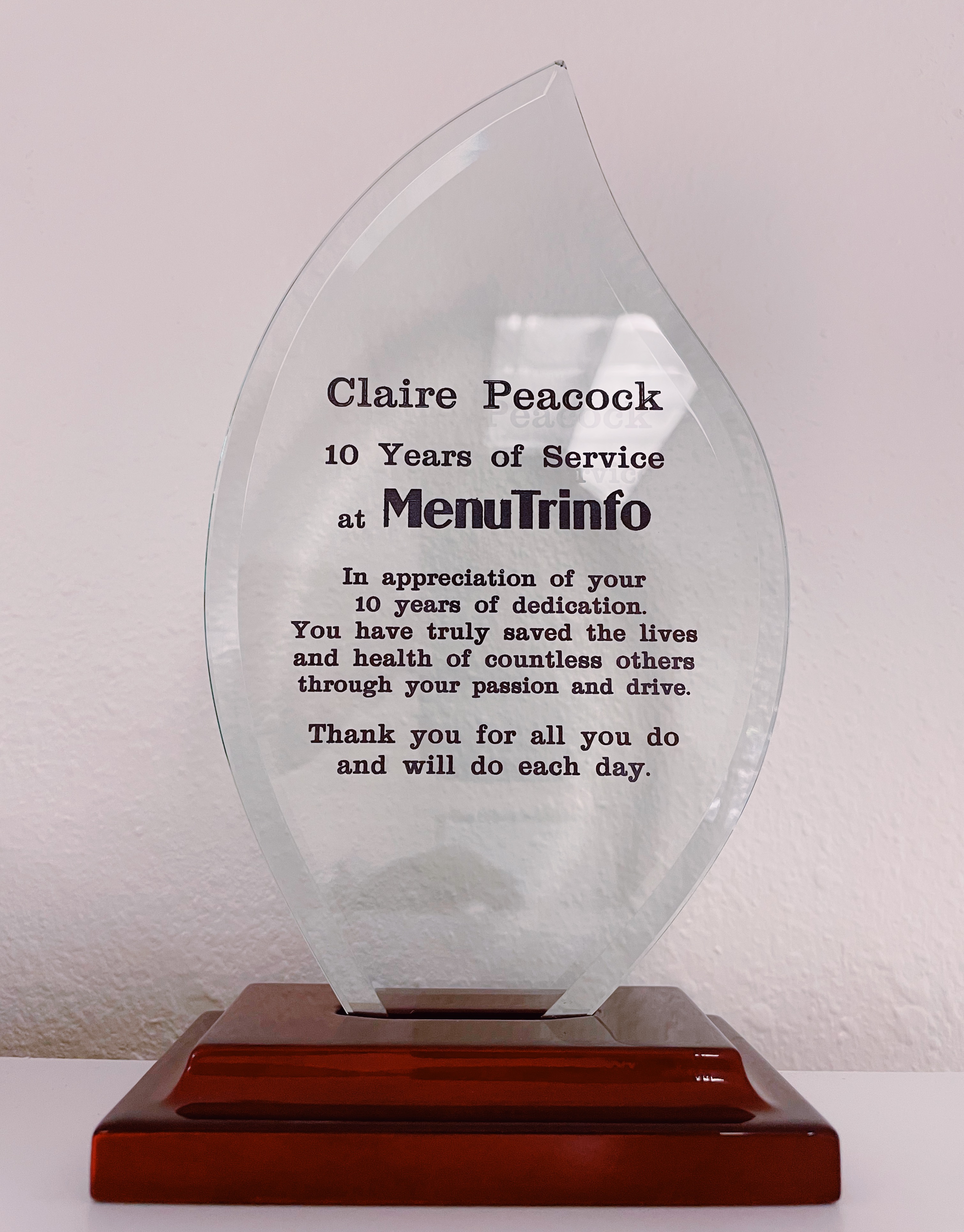FORT COLLINS, COLORADO, UNITED STATES, August 23, 2022 /EINPresswire.com/ -- Claire Peacock, Chief Operating Officer for MenuTrinfo®, has reached the 10-year mark of employment after being one of the company's first hired employees, dating back to 2012 when she was hired as an intern as she graduated college.