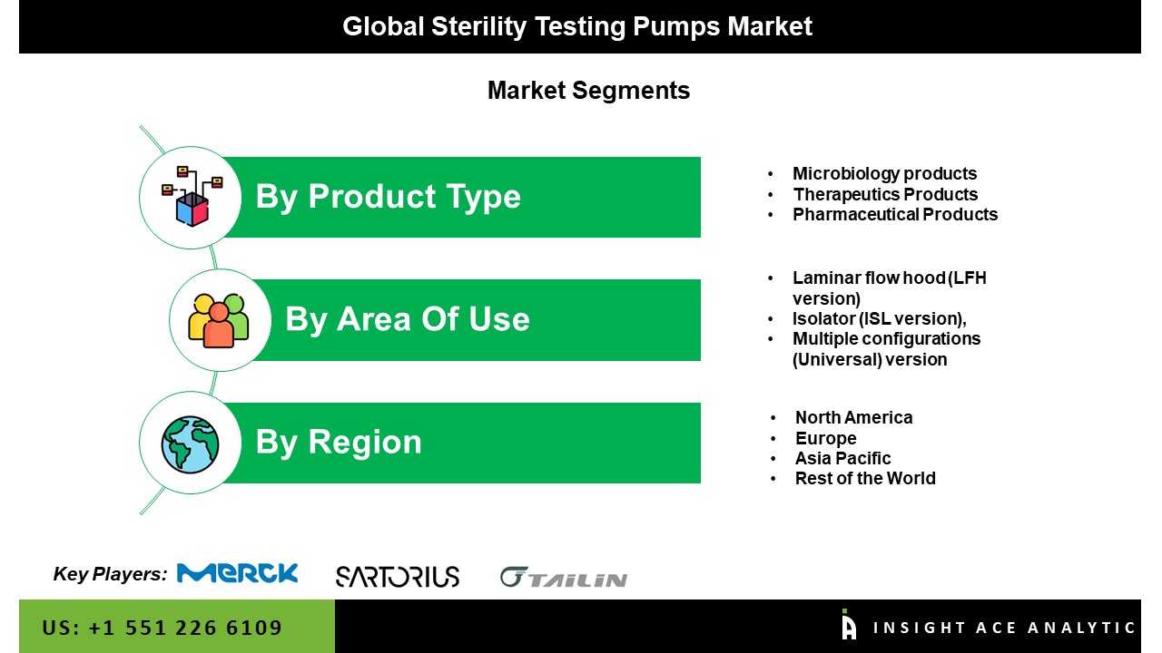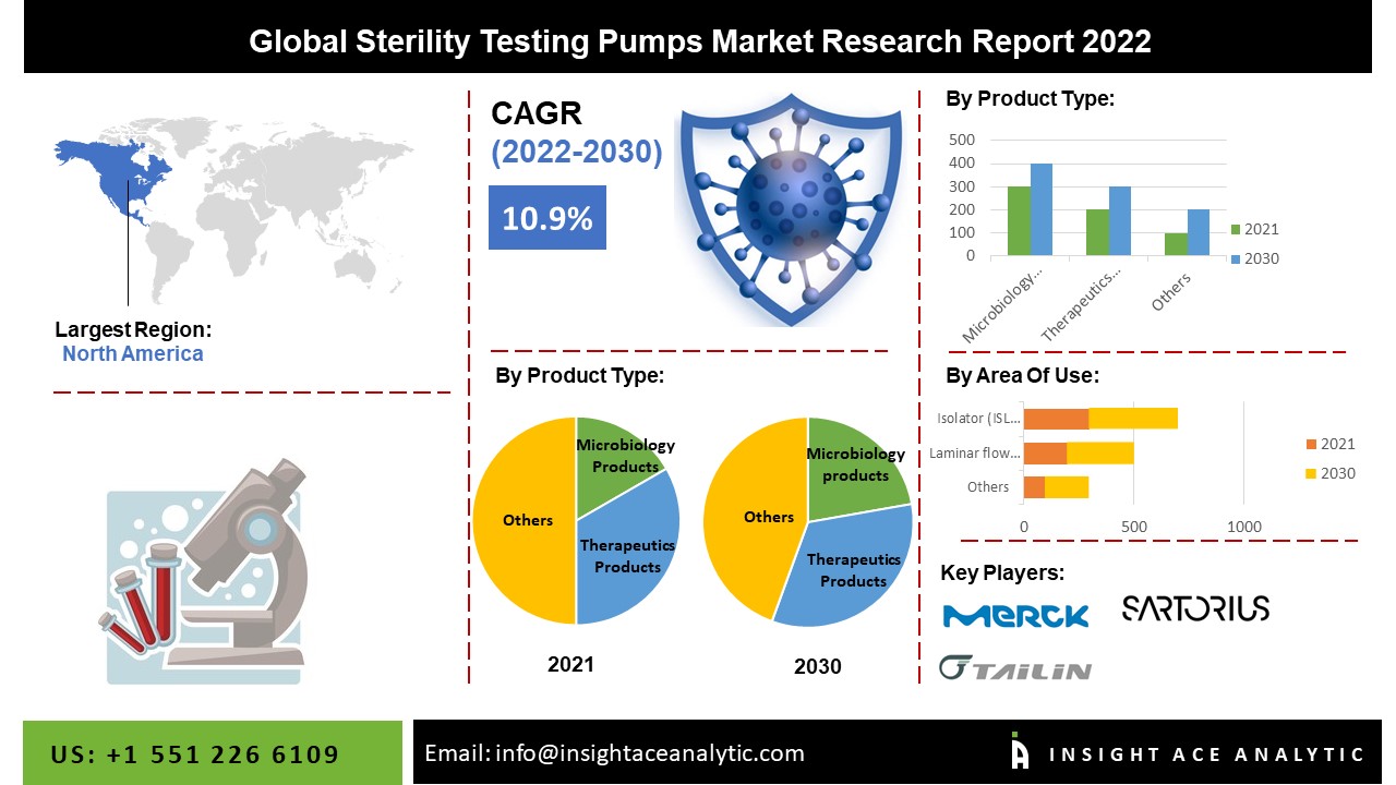 NEW JERSEY, NJ, USA, August 23, 2022 /EINPresswire.com/ -- InsightAce Analytic Pvt. Ltd. announces the release of a market assessment report on the "Global Sterility Testing Pumps Market- by Area of Use (Laminar flow hood (LFH version), Isolator (ISL version), and Multiple configurations (Universal) version), Type of Product to be Tested (Microbiology products, Therapeutics Products and Pharmaceutical Products), Trends, Industry Competition Analysis, Revenue and Forecast To 2030."