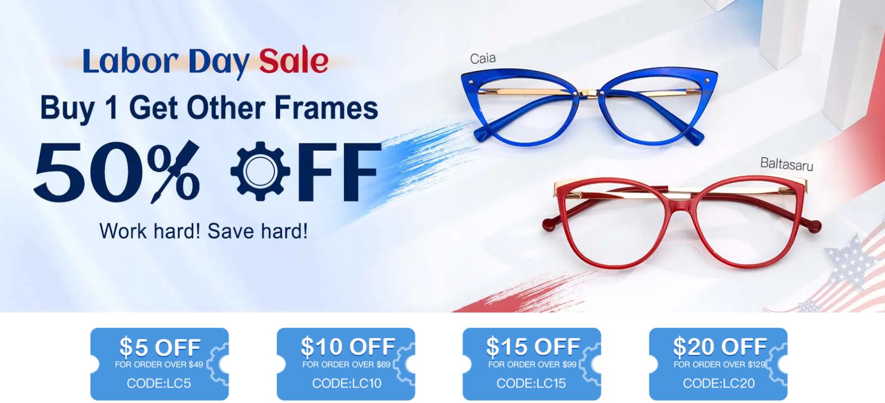 Catch the tail of summer, change a new style in fall, or do both of them. Labor Day sales help you get a pair of new glasses at a lower price, which is a reward for your hard work.