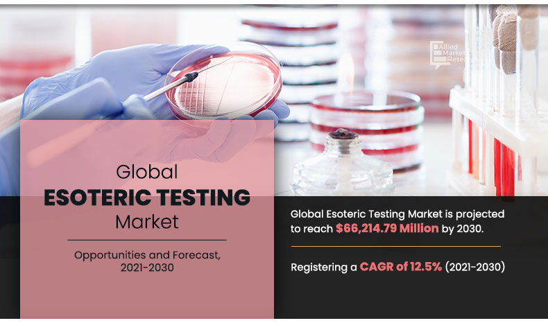 PORTLAND, OREGON, UNITED STATES, August 24, 2022 /EINPresswire.com/ -- Allied Market Research Analyst have added a new research study on Title Esoteric Testing Market, Global Outlook and Forecast 2022-2030 with detailed information & Key Players Such as ARUP Laboratories, Baylor Esoteric and Molecular Laboratory, Foundation Medicine, Healius Limited, Laboratory Corporation, Mayo Foundation for Medical Education and Research, OPKO Health, Quest Diagnostics, Sonic Healthcare Limited, and Stanford Clinical Pathology. The Study provides in-depth comprehensive analysis includes Clear Market definitions, classifications, manufacturing processes, cost structures, development policies and plans. The facts and data are well presented in the Esoteric Testing report using diagrams, graphs, pie charts, and other pictorial representations with respect to its current trends, dynamics, and business scope & key statistics.