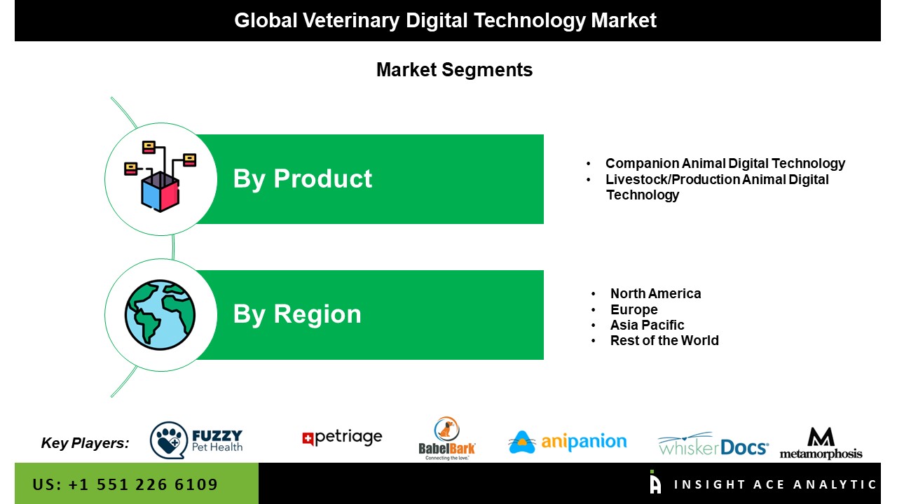 Major market players operating in the Veterinary Digital Technology market include SwineTech, Inc., inulogica, whiskerDocs, LLC, Fuzzy Pet Health, Quantified Ag, Metamorphosis Partners, Advanced Animal Diagnostics, Inc., Babel Bark, Inc., Pathway Vet Alliance, Anipanion, Linkyvet, TeleVet, Petriage, Inc., TeleTails, VetNOW, Airvet, Pawz Limited, Oncura Partners, PetPro Connect, VETOCLOCK, and VetCT.