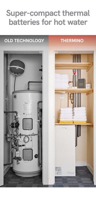 Sunamp designs and manufactures compact heat batteries based on its patented Plentigrade® high performance salt-based phase change material (PCM). The Thermino range contains high energy density Plentigrade P58 PCM that delivers instant, fast flowing hot water at a constant temperature from thermal batteries that are up to four times smaller than equivalent hot water cylinders. Around 20,000 heat batteries have already been installed in homes across the UK and internationally.