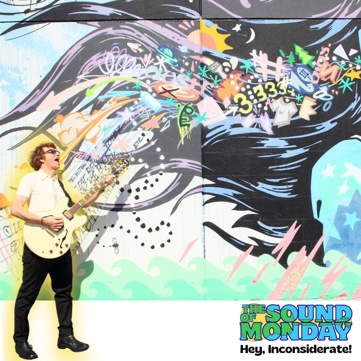 On “Hey, Inconsiderate!,” he’s kicking back at everybody who has allowed these trying times to provide a cover for their anti-social behavior. The Sound Of Monday has a message for all the space-stealers, road hogs, too-loud talkers, egotistical interrupters, and bad vibe merchants: it’s time to cut it out. Since he’s a nice guy as well as a winning songwriter, he isn’t *too* mean about it; since he’s a master of melody, he welds his sentiment to a track that’s as propulsive as the Attractions, as stylish as early ’80s Bowie, and as unforgettable as The Beach Boys. That’s his strategy, and it’s a very good one — he’ll use his command over catchiness to get the hook stuck in the heads of miscreants and prompt them to reconsider. Or maybe they’ll just sing along? – either way, he’s got an indie hit on his hands. It’s something irreducible, irascible, and unforgettable; it’s a statement of purpose from a dedicated rocker who’s been in the game too long to suffer fools.