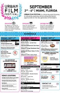 MIAMI, FLORIDA, USA, August 29, 2022 /EINPresswire.com/ -- Urban Film Festival (UFF) has announced its highly anticipated schedule for its free annual film festival held in the thriving historical Overtown Miami.The highly anticipated festival will provide access to panel discussions, networking opportunities, and masterclasses by industry professionals sharing gems on the process of filmmaking from start to finish.