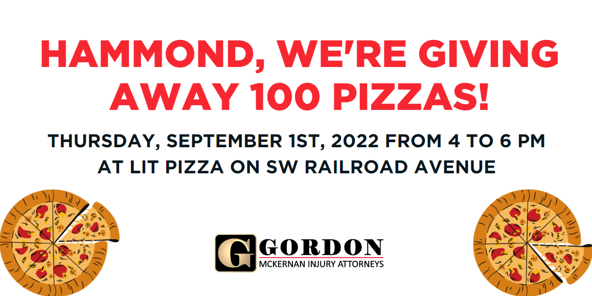 HAMMOND, LA, UNITED STATES, August 29, 2022 /EINPresswire.com/ -- Hammond personal injury law firm Gordon McKernan Injury Attorneys is partnering with Lit Pizza to give away 100 free pizzas on Thursday, September 1.McKernan and his local, hometown team of attorneys have served the Hammond community for years. McKernan aims to show his appreciation for the community and support for one of Hammond’s newest businesses, Lit Pizza, by giving away 100 free pizzas.