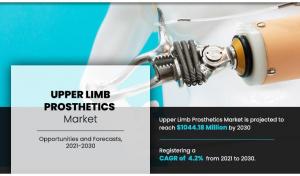 PORTLAND, OREGON, UNITED STATES, August 30, 2022 /EINPresswire.com/ -- According to a new report published by Allied Market Research, titled, “Upper Limb Prosthetics Market by Product Type, Component, End User, and Region: Global Opportunity Analysis and Industry Forecast, 2021–2030," The global upper limb prosthetics market size was valued at $687.73 million in 2020, and is projected to reach $1,044.18 million by 2030, registering a CAGR of 4.24% from 2021 to 2030.Download Free Sample Report: