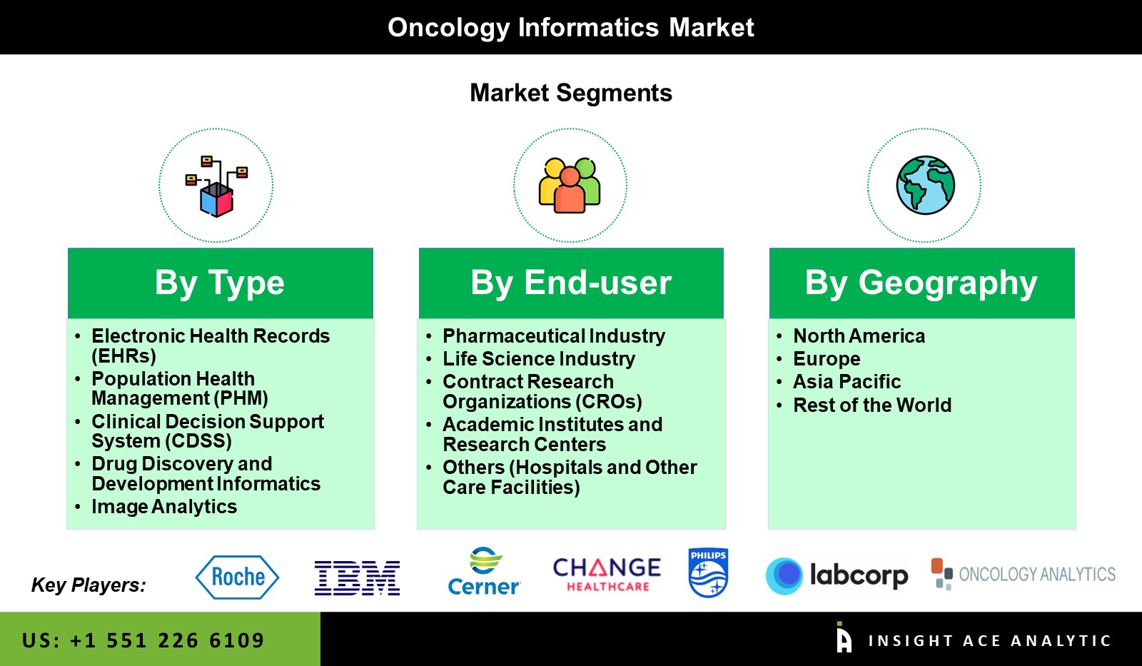 Major market players operating in the Oncology Informatics market include Cerner Corporation, Change Healthcare, Elekta AB, F. Hoffmann-La Roche Ltd, Hologic, Inc., IBM Corporation, Inspirata, Inc., Koninklijke Philips N.V., Laboratory Corporation of America Holdings, McKesson Corporation, MIM Software, Inc., Oncology Analytics, Inc, PerkinElmer, Inc., RELX Group, Sirenas, LLC, UnitedHealth Group, Inc, Varian, Medical Systems, Inc, and other Prominent Players.