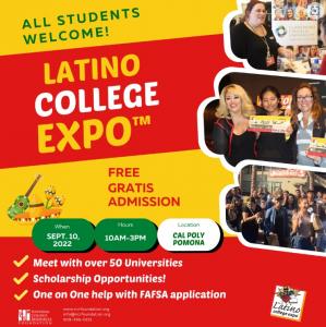 Latino College Expo™ (LCE) provides students with information about the college admissions process and also resources to help pay for college. There are workshops about DACA, Dream Act, financial aid, scholarships, internships, career opportunities, and educational resources. In addition, some of the colleges will waive their application fees, offer scholarships, and even possibly ACCEPT students on the SPOT!