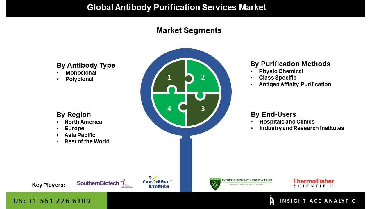 Major market players operating in the Antibody Purification Services market include Antibody Research Corporation, Bio-synthesis Incubi Solutions, Southern Biotech, COVALA, Envi go, Rockland, Creative Biolabs, Abcam, BBI Solutions, Kare bay Bio, Thermo Fisher Scientific, Virus’s Corporation, RD Biotic, Detail Bio-tech Co, Genseric, KMD Bioscience, Southern Biotic, GE Healthcare, Huambo, Antibodies In, Proscar Incorporated, Proteogenic, Gangway Biotech, Inc., Covance Inc., Sino Biological Inc., Kaneka Neurogenetic S.A., Takara Bio Inc., Other Prominent Player.