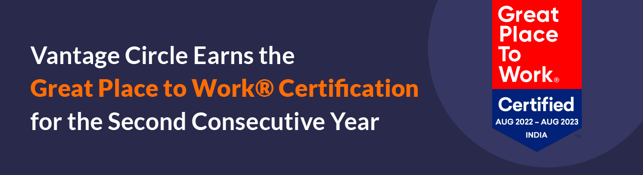 NEW DELHI, DELHI, INDIA, September 5, 2022 /EINPresswire.com/ -- Vantage Circle, a leading global employee engagement solution, announces receiving the Great Place to Work® Certification for 2022-2023. Vantage Circle has been certified for the second consecutive year by the Great Place to Work Institute. The certification is based entirely on employees’ feedback and experiences in their organizations.