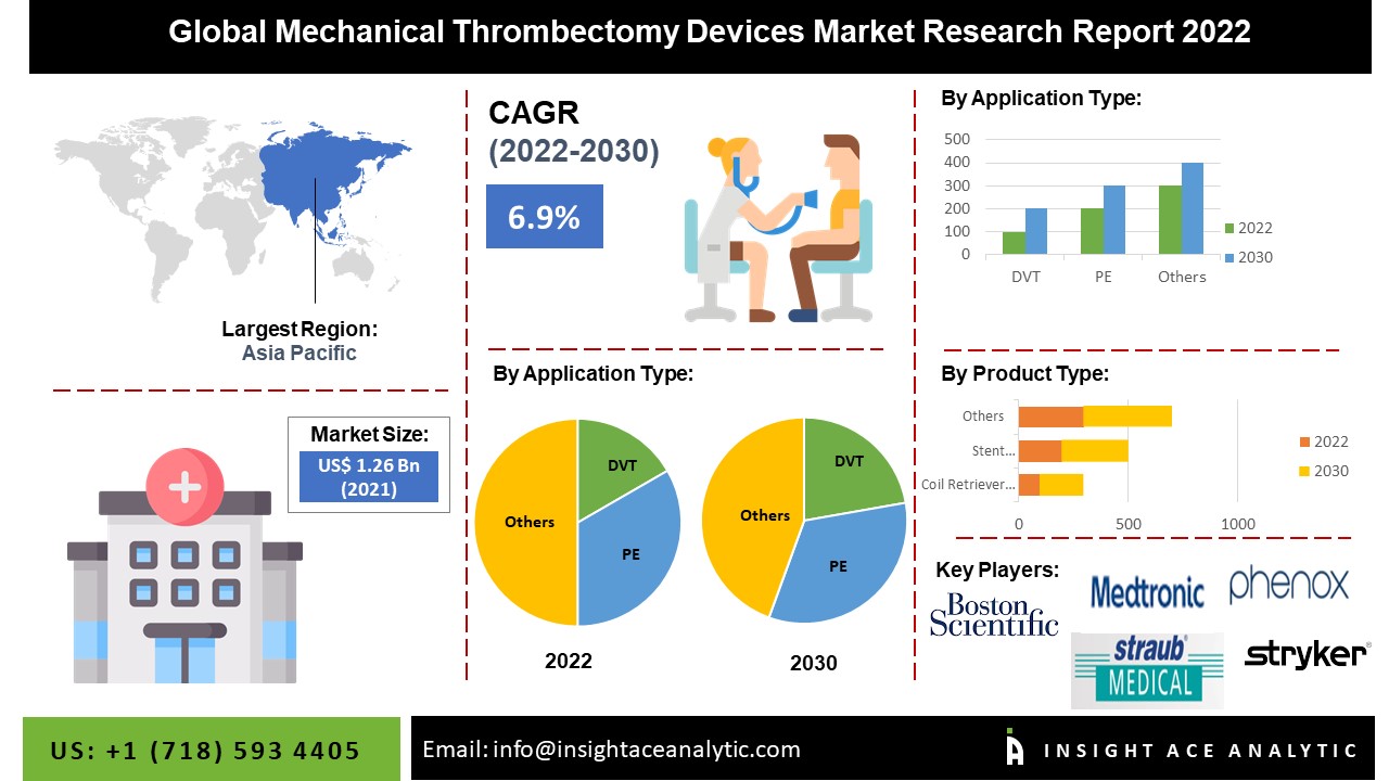 NEW JERSEY, NJ, USA, September 9, 2022 /EINPresswire.com/ -- Insightace Analytics Pvt. Ltd. announces the release of a market assessment report on the "Global Mechanical Thrombectomy Devices Market- by Product Type (Coil Retriever Devices, Stent Retriever Devices, Aspiration Devices, Manual Thrombectomy Devices and Others (Ultrasound Based Devices)), Application Type (Stroke, Deep Vein Thrombosis (DVT), Pulmonary Embolism (PE), Arteriovenous fistula (AVF), Peripheral Arterial Disease (PAD), Haemodialysis Treatments, Percutaneous coronary intervention (PCI) and Others), End-User (Hospitals, Ambulatory Surgical Centers, Specialty Clinics and Academic & Research Institutes), Trends, Industry Competition Analysis, Revenue and Volume Forecast To 2030."